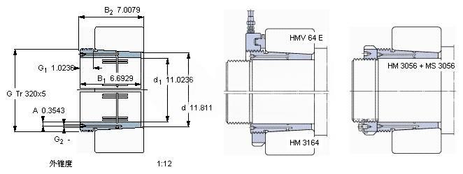 | Nut for locking on shaft+Locking device | HM 3056 + MS 3056 | - | |