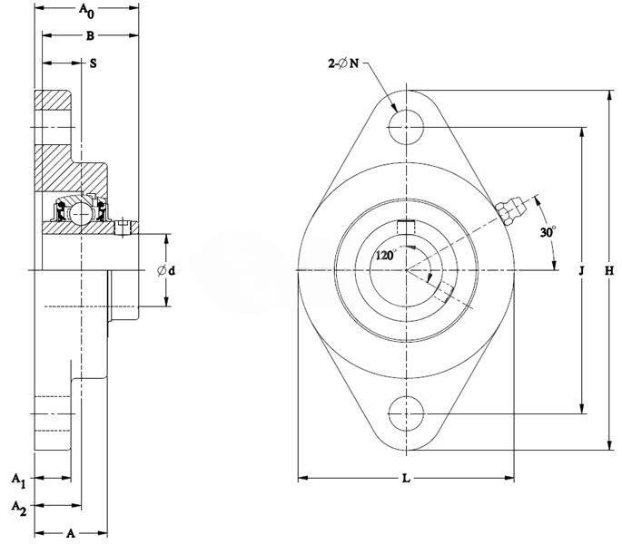 | Center of Bearing from Housing End A2 | 19.4 mm 0.764 in | ||