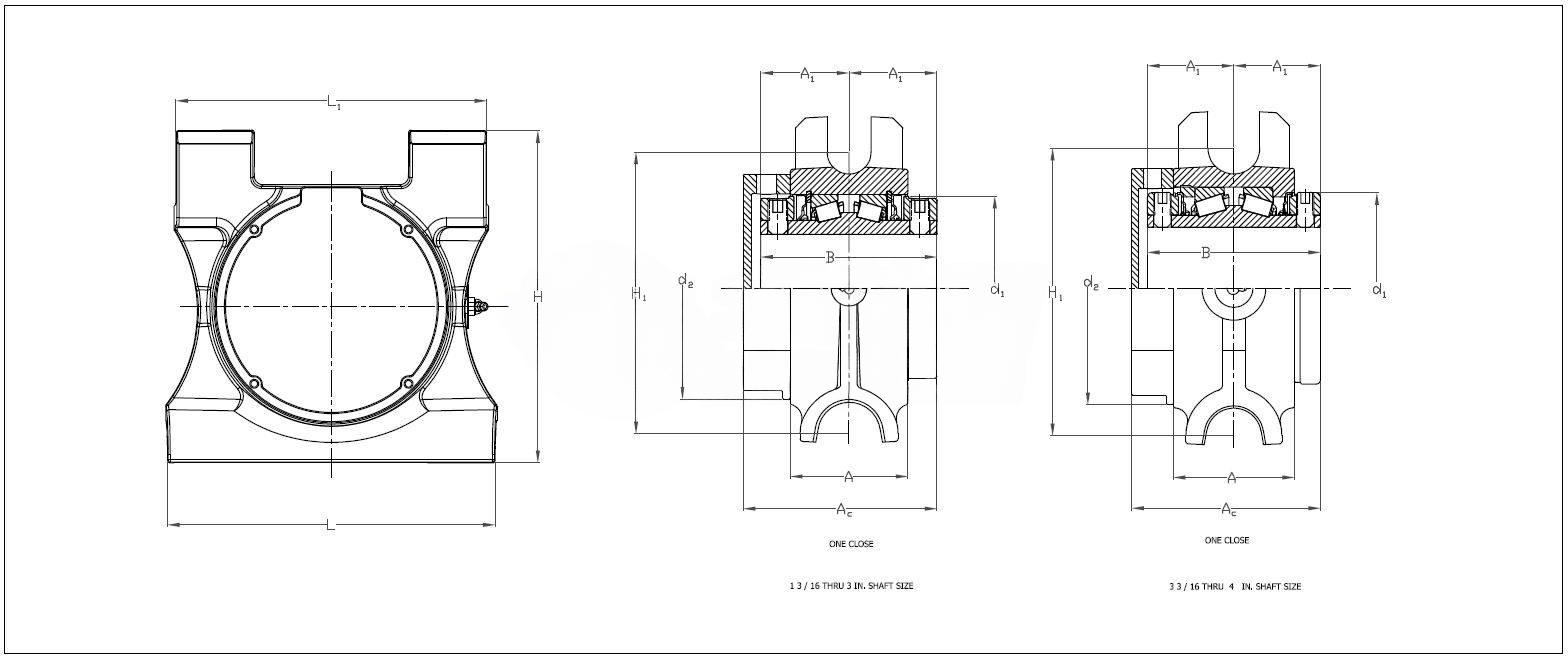 | Note | Note: All units have a 1/Series 8" pipe thread grease fitting The Maximum Permissible Thrust Load applies to conditions of slip fit with set screw mounting or in applications where a large moment loading occurs. The values shownare valid only when two collars and set screws are used. When heavy thrust forces are applied, the friction between the pillow block base may not be sufficient to prevent movement. Mechanical stops or shear bars withstrength sufficient to support the load should be added. Never weld the pillow block or bearing to secure it to the shaft or base. | ||
