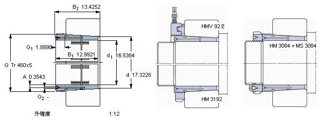 | Nut for locking on shaft+Locking device | HM 3084 + MS 3084 | - | |