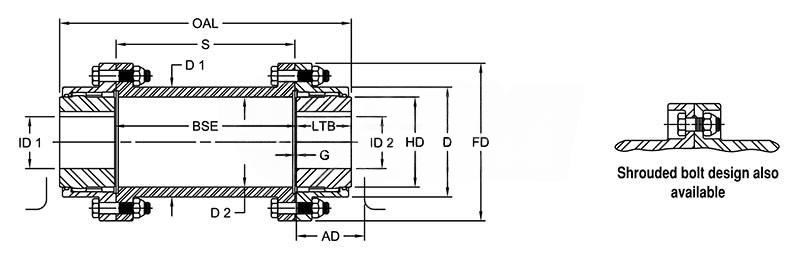 | Distance between Shaft Ends (Dimension BSE) | 127.00 mm 5.000 in | ||