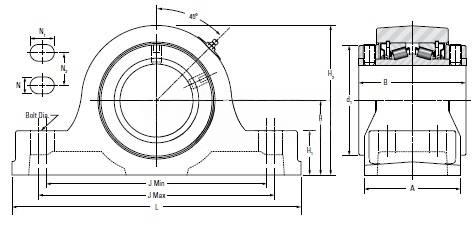 | Note | Note: All units have a 1/8" pipe thread grease fitting The Maximum Permissible Thrust Load applies to conditions of slip fit with set screw mounting or in applications where a large moment loading occurs. The values shownare valid only when two collars and set screws are used. When heavy thrust forces are applied, the friction between the pillow block base may not be sufficient to prevent movement. Mechanical stops or shear bars withstrength sufficient to support the load should be added. Never weld the pillow block or bearing to secure it to the shaft or base. | ||