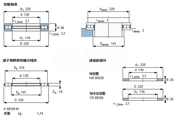 | Roller and cage thrust assembly | K (type) 89326 Series M | - | - |