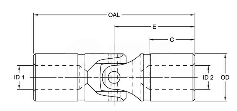 | Max. Bore - No Keyway (Dim. ID1 & ID2) | 44 mm 1.75 in | ||
