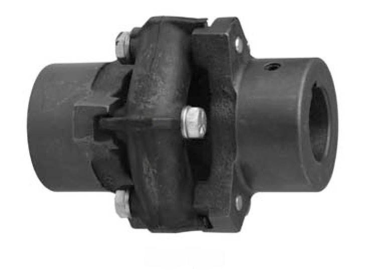 While the Saga coupling is normally associated with shaft-to-shaft applications, adaptations for flange and flywheel mountings can be made. In addition, a floating shaft version for use in lieu of a universal joint drive shaft with separate torsional coupling is available. Its elements can also be stacked in series for use in applications with extreme transient or permanent parallel misalignment, or where torsional dynamics demand an extremely soft element for proper damping and/or vibratory decoupling. The rubbers stiffness of 60 as measured against Shore A by durometer, covers the majority of such situations. | ||