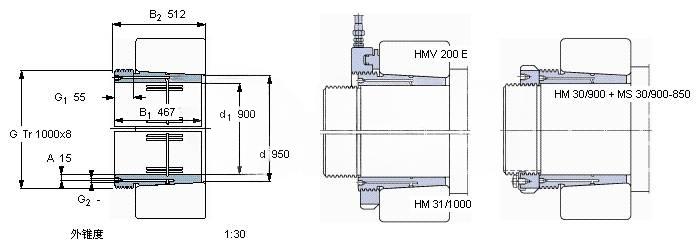 | Nut for locking on shaft+Locking device | HM 30/900 + MS 30/900-850 | - | |