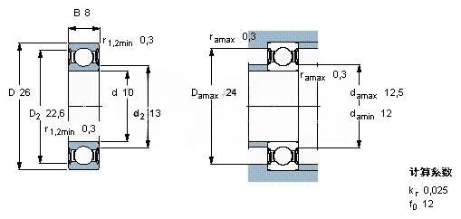 Inner diameter : 10mm    Outer diameter : 26mm    Width : 8mm    Weight: 0.019Kg