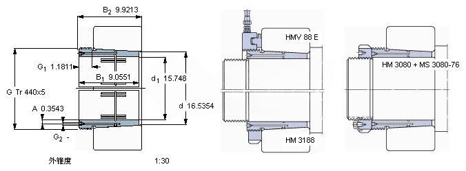 | Nut for locking on shaft+Locking device | HM 3080 + MS 3080-76 | - | |