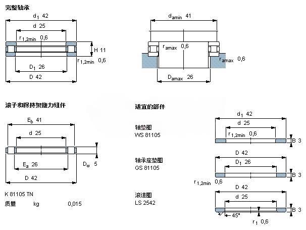 | Roller and cage thrust assembly | K (type) 81105 TN | - | - |