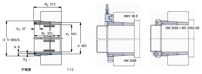 | Nut for locking on shaft+Locking device | HM 3088 + MS 3092-88 | - | |
