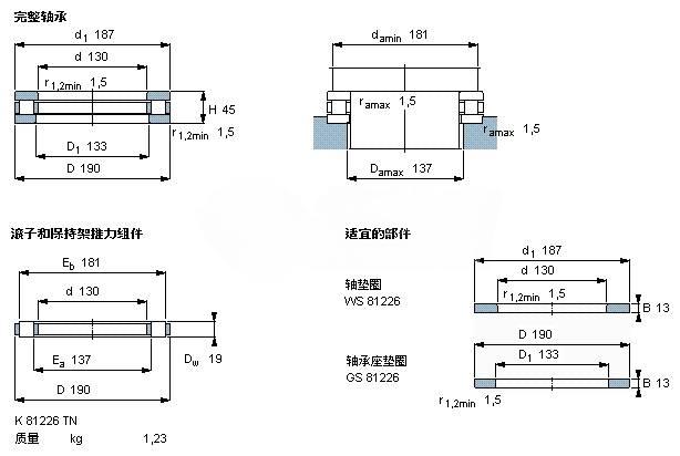 | Roller and cage thrust assembly | K (type) 81226 TN | - | - |