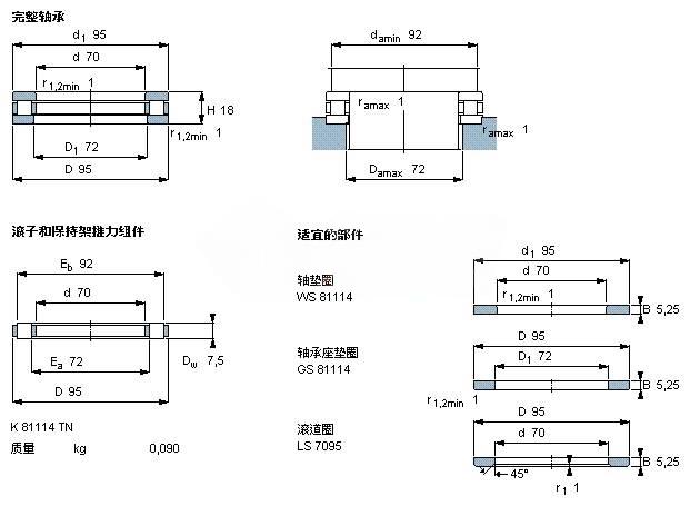 | Roller and cage thrust assembly | K (type) 81114 TN | - | - |