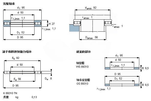 | Roller and cage thrust assembly | K (type) 89310 TN | - | - |