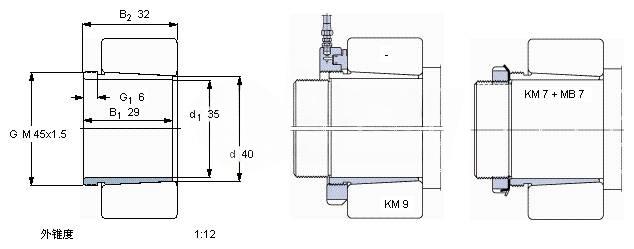 | Nut for locking on shaft+Locking device | KM 7 + MB 7 | - | |