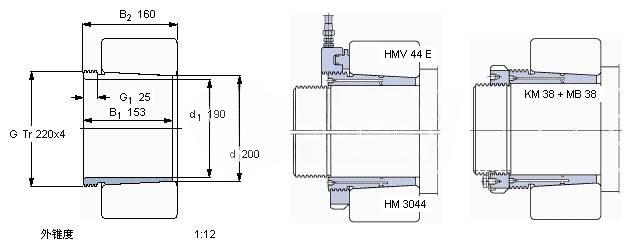| Nut for locking on shaft+Locking device | KM 38 + MB 38 | - | |