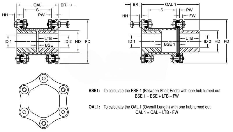 | Weight (Complete Coupling w/ Max. Bores) | 13.00 lb | ||