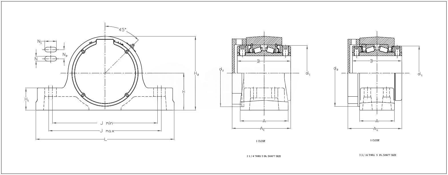 | Note | Note: All units have a 1/8" pipe thread grease fitting The Maximum Permissible Thrust Load applies to conditions of slip fit with set screw mounting or in applications where a large moment loading occurs. The values shownare valid only when two collars and set screws are used. When heavy thrust forces are applied, the friction between the pillow block base may not be sufficient to prevent movement. Mechanical stops or shear bars withstrength sufficient to support the load should be added. Never weld the pillow block or bearing to secure it to the shaft or base. | ||